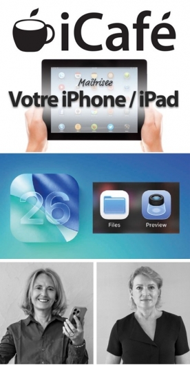 Ce cours est indépendant des autres et peut donc être suivi même si vous n’étiez pas présent aux cours précédents, du moment que votre iPhone/iPad est sous iOS26. Si vous éprouvez des difficultés à mettre votre appareil à jour, n’hésitez pas à contacter laurence@vanis.be ou isabellevandenbosch@gmail.com avant de vous inscrire ou avant le cours.